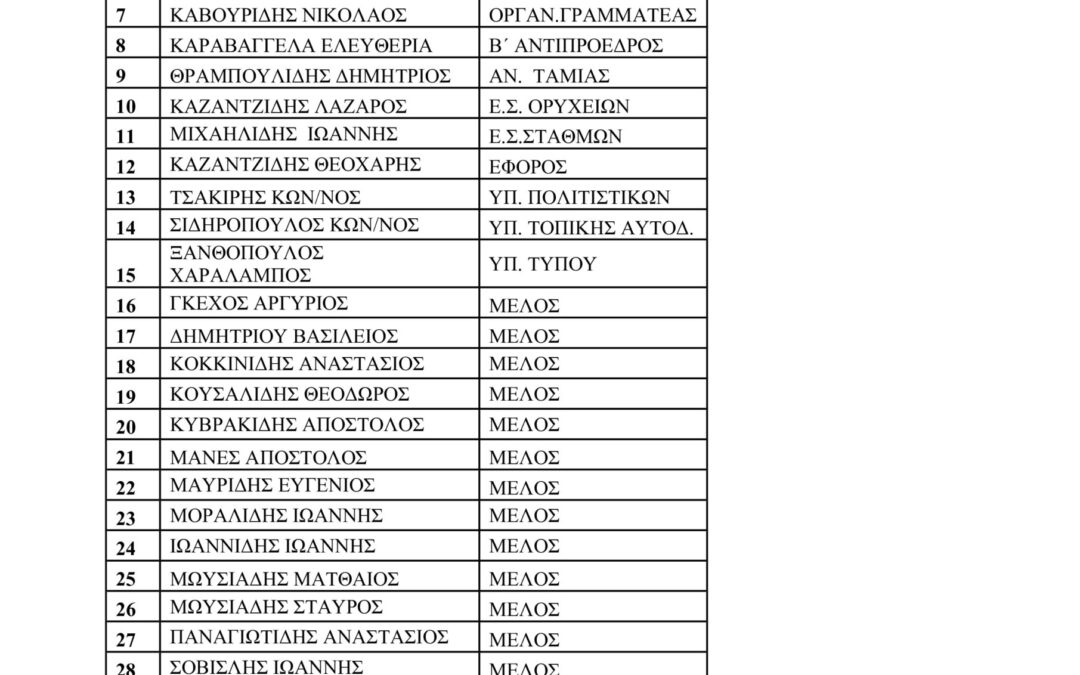 Η νέα σύνθεση του ΔΣ