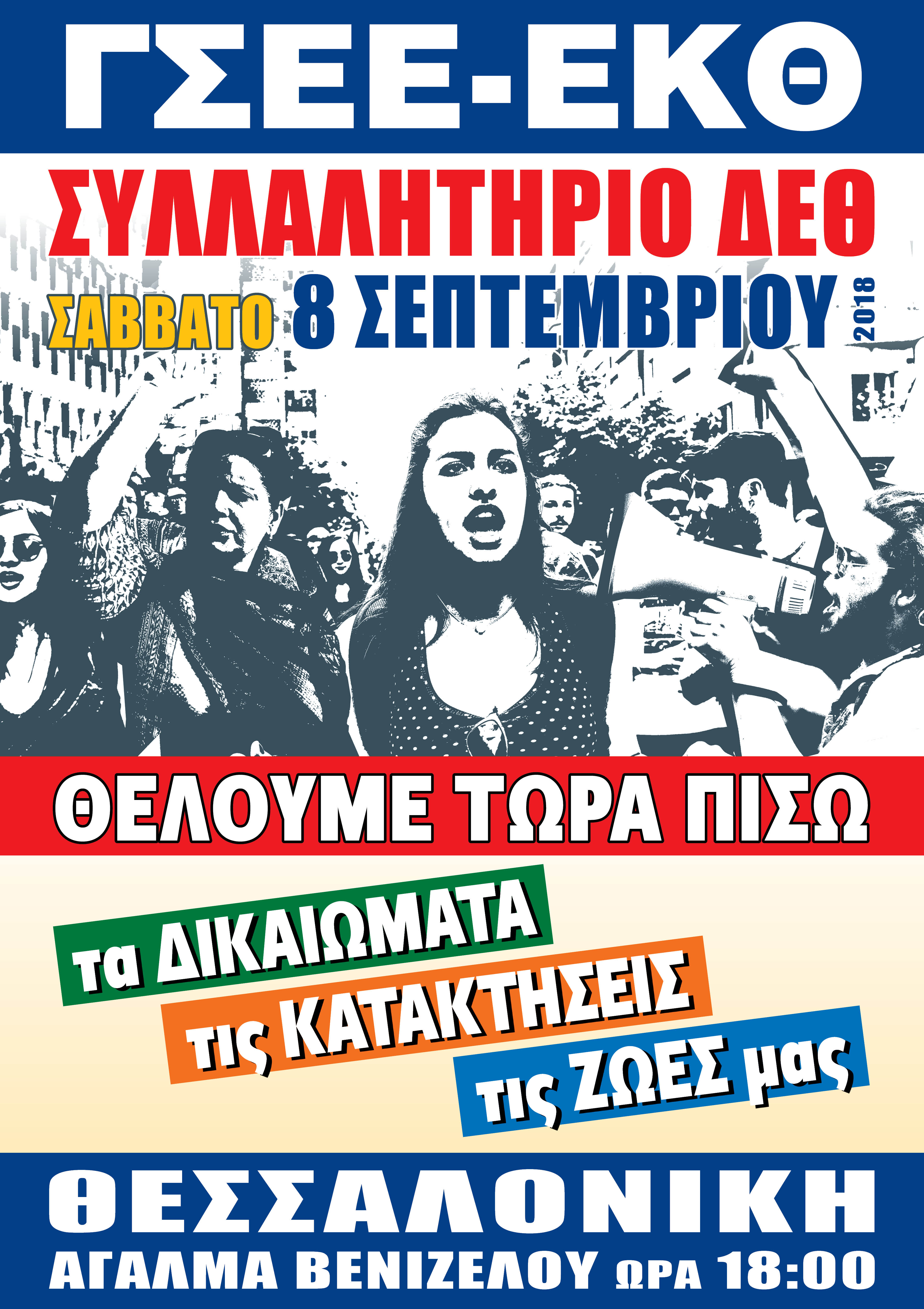 Στο φετινό ραντεβού των εργαζόμενων, των ανέργων, των συνταξιούχων, των αγανακτισμένων πολιτών στη ΔΕΘ, για μία ακόμα φορά θα διεκδικήσουμε τα δικαιώματα, τις κατακτήσεις, τις ζωές μας έχοντας στην απέναντι όχθη όλους αυτούς που έχουν την ψευδαίσθηση ότι μετά από την έξοδο της χώρας από τα Μνημόνια, κάτι άλλαξε!!!