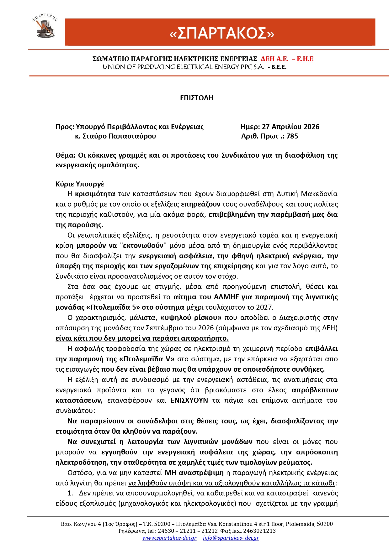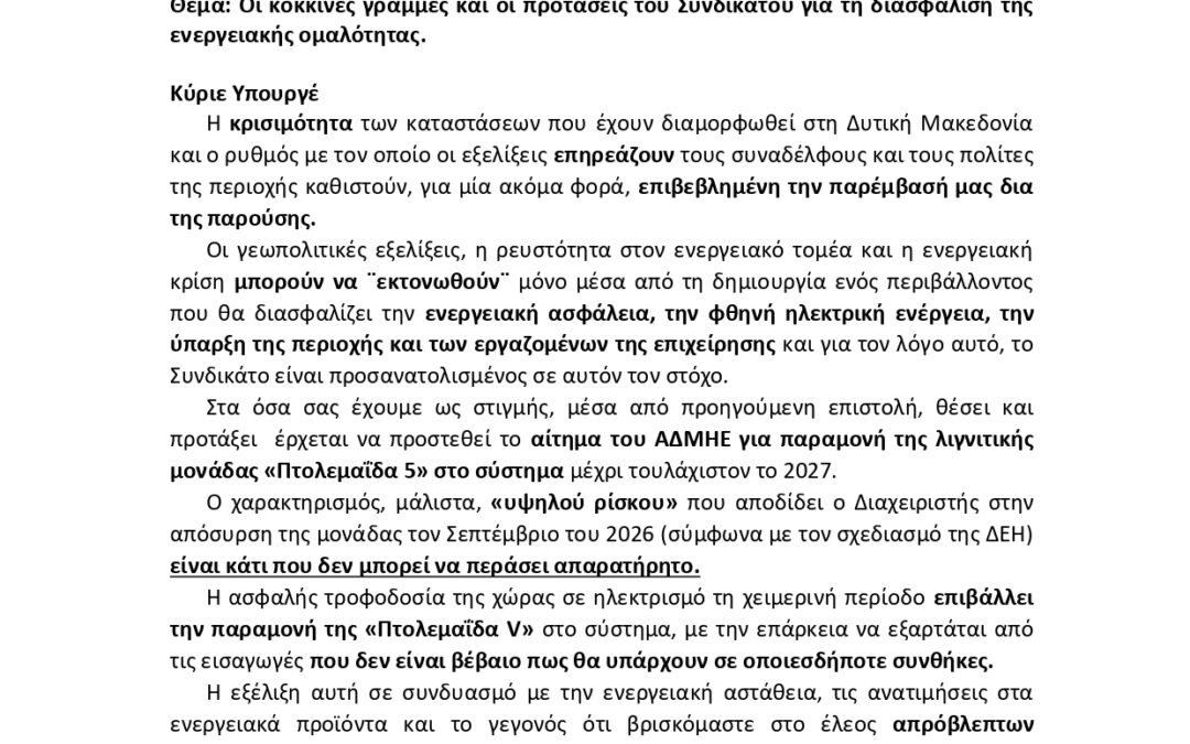 Επιστολή προς τον Υπουργό Ενέρειας κ. Παπασταύρου_page-0001